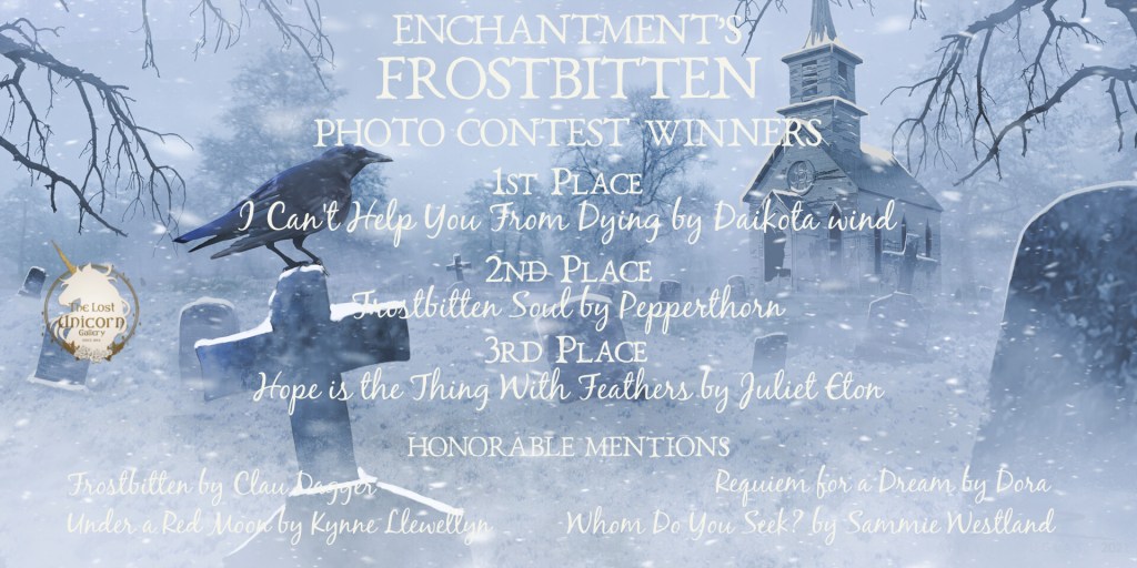 Thank you to all who entered your pictures in the Enchantment Nevermore Photo Contest! There were so many amazing pictures to choose from, but we finally have our winners! CONGRATULATIONS to the winners listed above! The judges felt yours stood out and creatively embraced the theme of Nevermore, a Macabre Fairy Tale for this round :). Fantastic job!