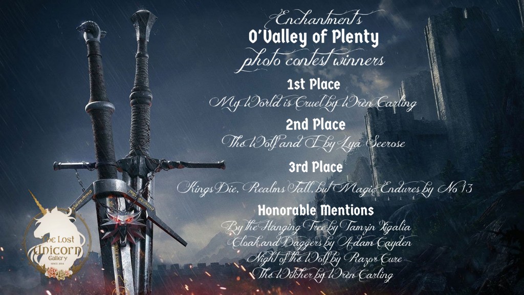Thank you to everyone who entered this round of Enchantment’s O’Valley of Plenty Photo Contest! We sure did have some fantastic entries! Congratulations to the winners!! Your pictures will be displayed at The Lost Unicorn Gallery soon.