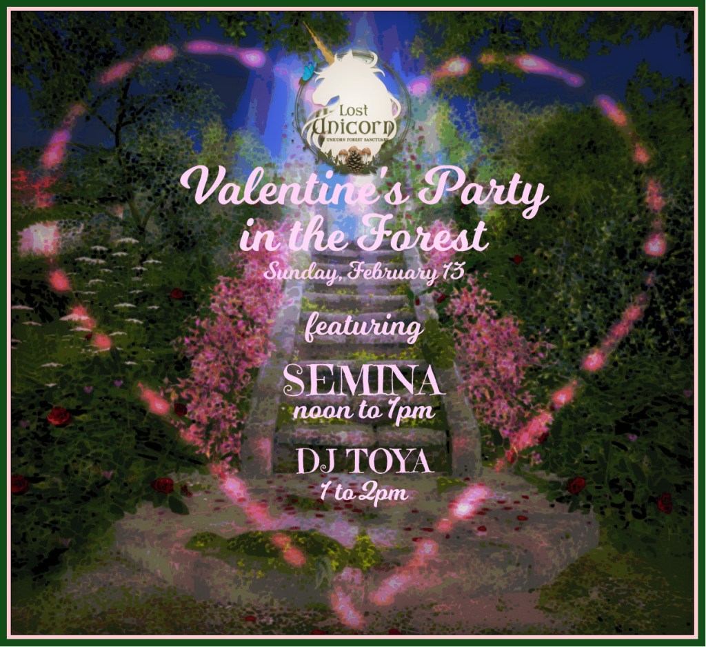 Come join us Sunday, the 13th for a special Valentine’s celebration at Finian’s Foraois (Lost Unicorn sim)!