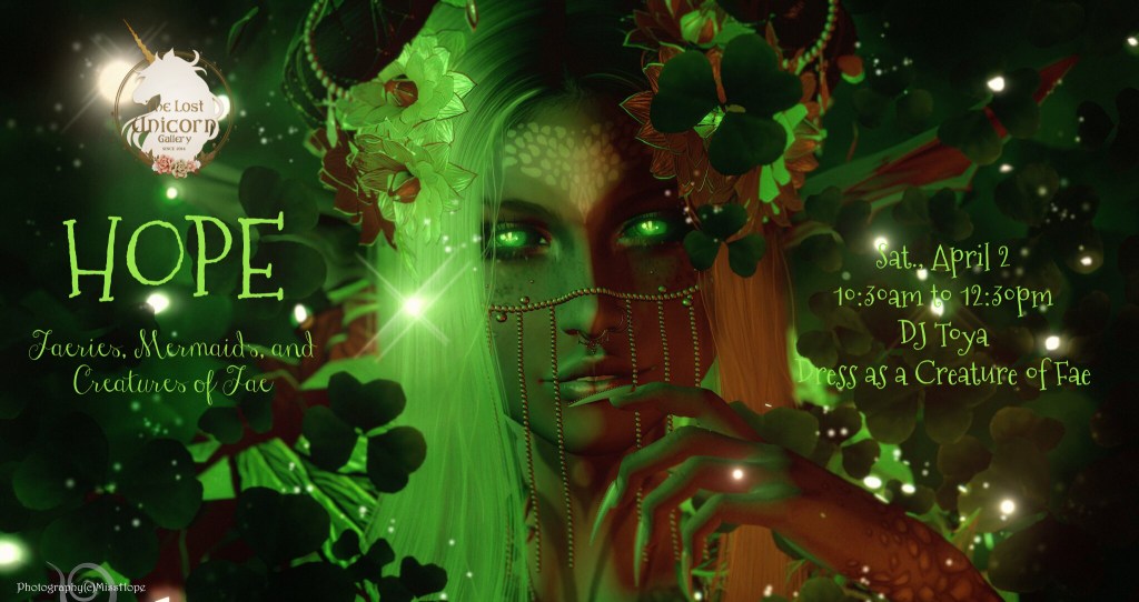 I know it hasn’t been too long since I discovered Hope and her amazing fantasy artwork. I remember seeing one of her pictures and was totally in awe…then came more and more posts in Flickr that were absolutely stunning. All her gorgeous avatar captures bring the magic of faeries, mermaids, elves and many other creatures of fae to life. Her use of color and light truly shines and adds so much depth to her pictures.