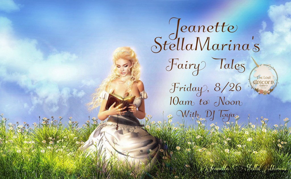 Come join us this Friday, August 26 at 10am for the Opening in honor of artist Jeanette StellaMarina! Jeanette is known for her beautiful fantasy work, especially her love of portraying fairy tales. This show coincides with our opening of the new Storybook location on the gallery sim, which is also all about fairy tales!