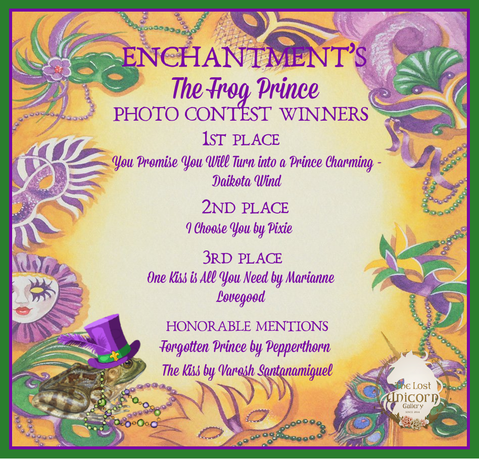 Thank you to all who entered the Enchantment contest this round of Royal Kiss of Mardi Gras: The Frog Prince!
